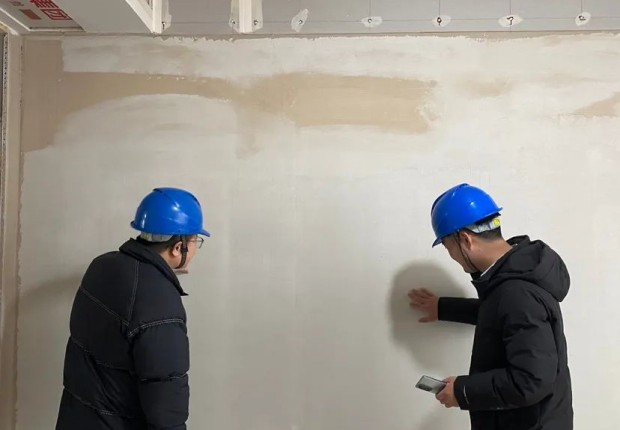 華派工藝檢驗1、質檢員使用空鼓錘檢查瓷磚是否存在空鼓現象,發現該工地均符合標準施工規范。